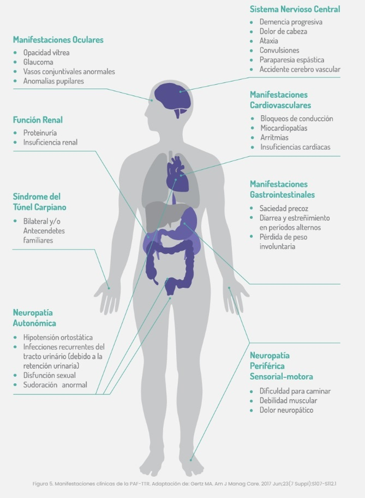 Na FAP-TTR, as manifestações clínicas são multissistêmicas e debilitantes, com significativo impacto psicológico e familiar. Em relação à descoberta da doença em fases iniciais, Crespi refere-se à faixa dos 25-35 anos e mais avançada nos 50 anos, mas é sempre prudente suspeitar em qualquer caso de Polineuropatia.
